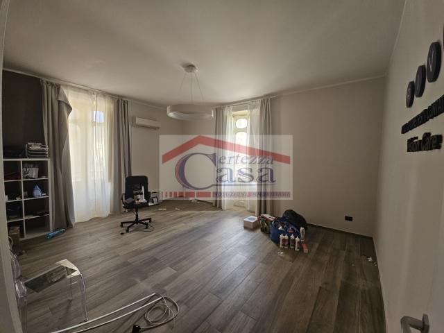 Vendesi appartamento ubicato al primo piano di uno stabile in stile, situato nella centralissima piazza V. Emanuele, angolo via Matteotti. L'accesso è su via Matteotti.
